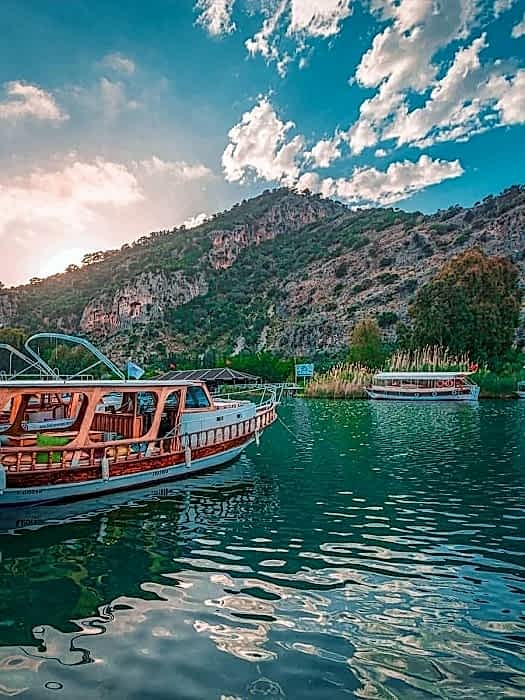 Günlük ve çam ağaçları ile dolu ormanlar arasından kırk beş dakikalık bir otobüs yolculuğunun ardından Dalyan’a ulaşacaksınız. Burada bulunan limanda sizi küçük motorlu tekneler kaptanlarıyla birlikte sizi beklemektedir.
