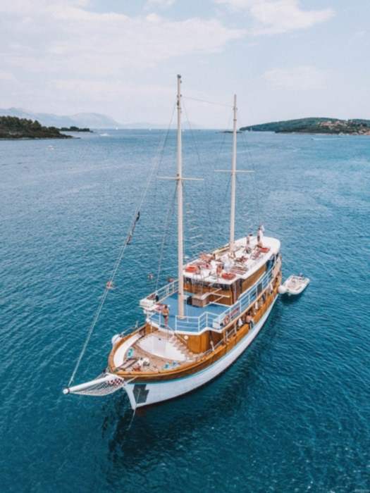 Ayrıca teknemizde lezzetli bir öğle yemeği sunuyoruz. Öğle yemeği menüsünde taze salata, tavuk ve makarna bulunur. Teknemiz, öğle yemeğinin yanı sıra ek ücret ödemeden kullanabileceğiniz tüm alkolsüz içeceklerin bulunduğu bir bara sahiptir.
